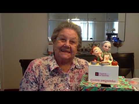 Olha que linda!! A vovó Palmirinha agradecendo pelo presente que enviei e confesso que quem ficou emocionada foi eu.